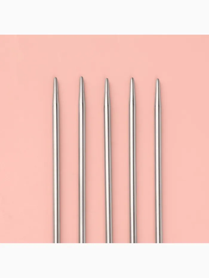 Данные спицы предназначены для вязания чулочно-носочных изделий, шапок, рукавов. Отличаются от круговых количеством (в чулочных сразу 5 рабочих инструментов) и длиной. Как правило, чулочные спицы короткие и подходят для изделий небольшого диаметра.