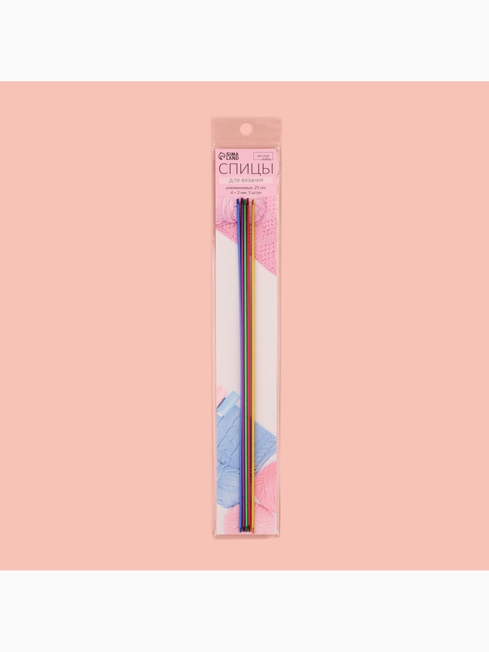 Спицы для вязания, чулочные, из алюминия, d=2 мм, 25 см, 5 шт., разноцветные — Характеристики