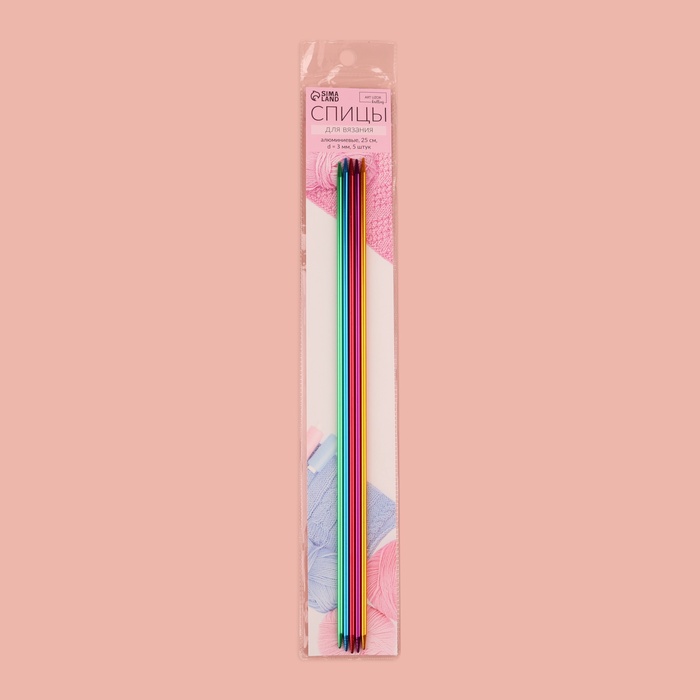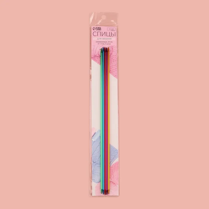 Спицы для вязания, чулочные, из алюминия, d=3 мм, 25 см, 5 шт., разноцветные — Характеристики