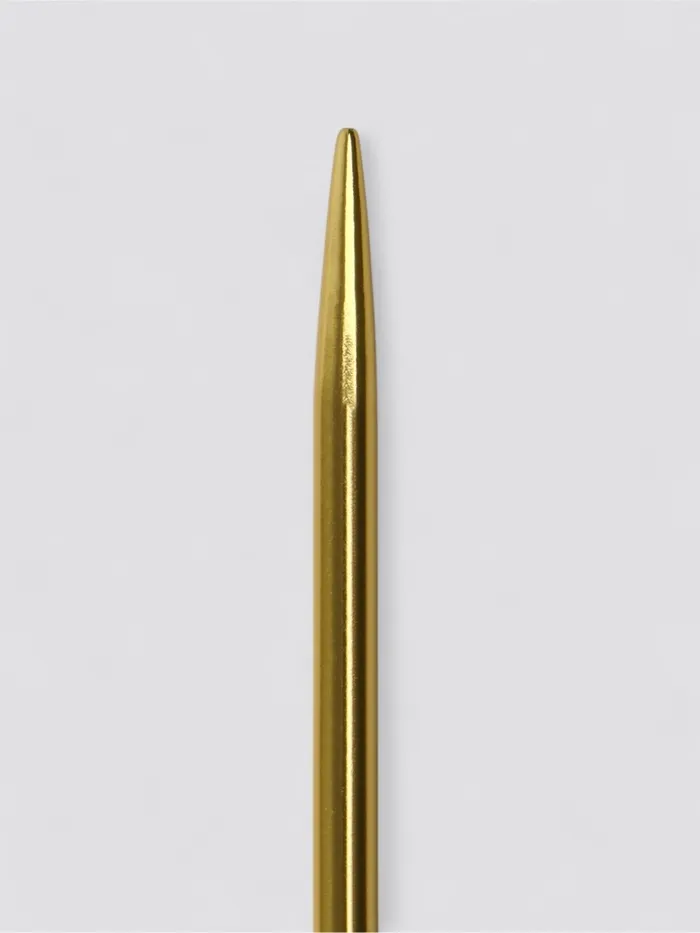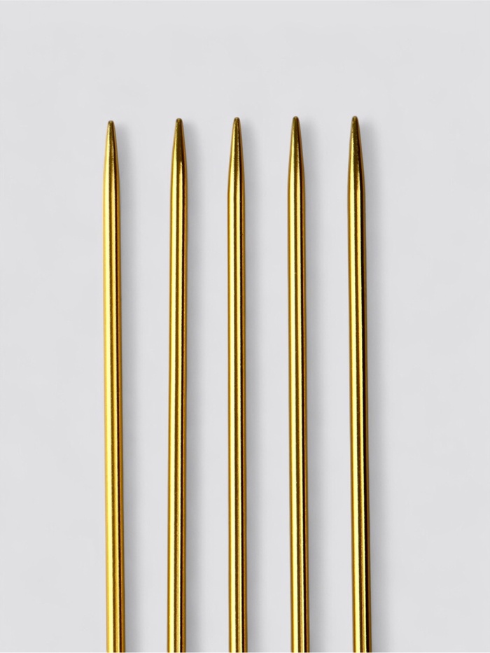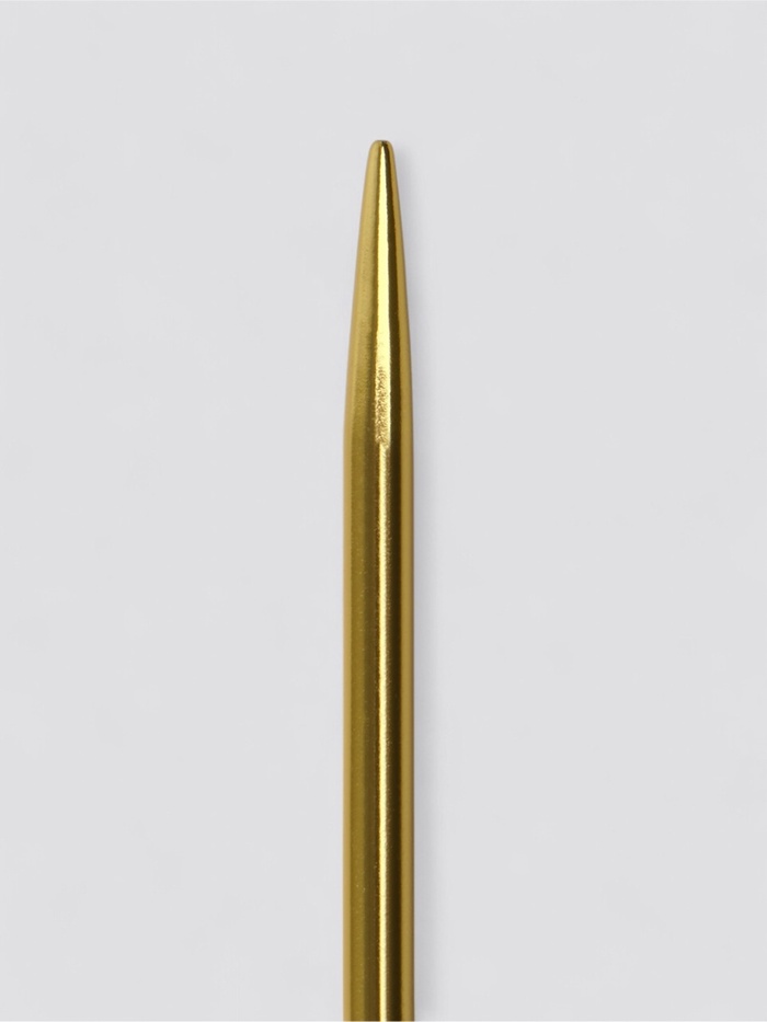 Каждая спица имеет анодированное покрытие золотого цвета, которое не только придаёт инструменту стильный вид, но и улучшает его эксплуатационные характеристики. Это означает меньшее сцепление пряжи со спицами и более равномерное вязание.