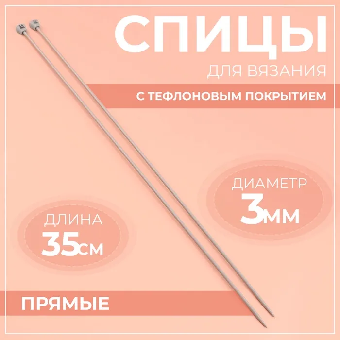 Спицы для вязания, прямые, с тефлоновым покрытием, d=3 мм, 35 см, 2 шт.