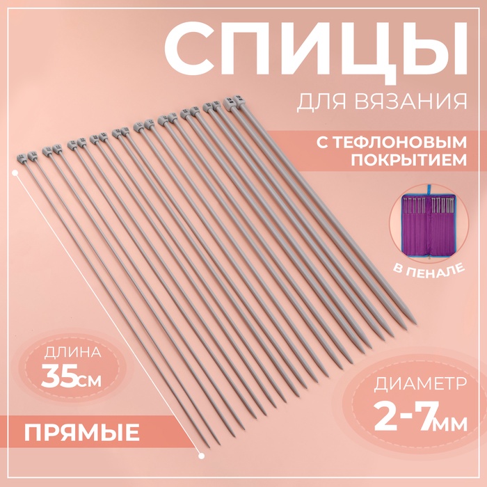 Спицы для вязания, с тефлоновым покрытием, d = 2-7 мм, 35 см, 10 пар в пенале — Характеристики