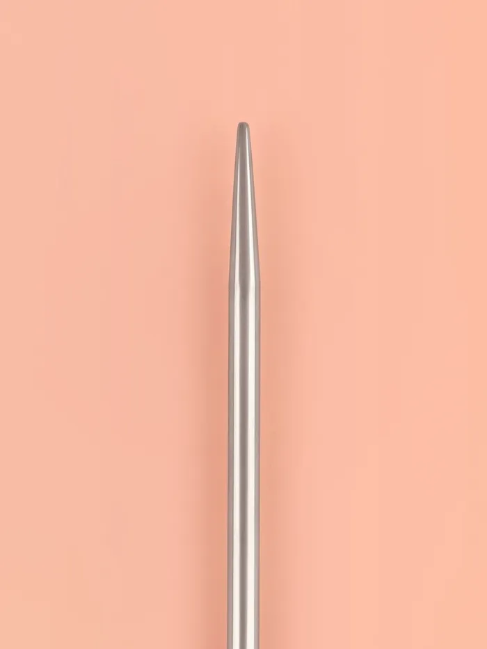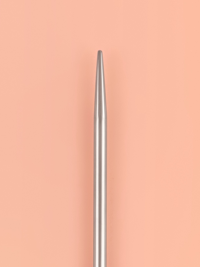 Круговые спицы представляют собой две металлические части, соединённые друг с другом тросиком. Инструмент незаменим при вязании полотна по кругу. С его помощью получаются изделия без дополнительных швов: шапки, рукава и горловины.