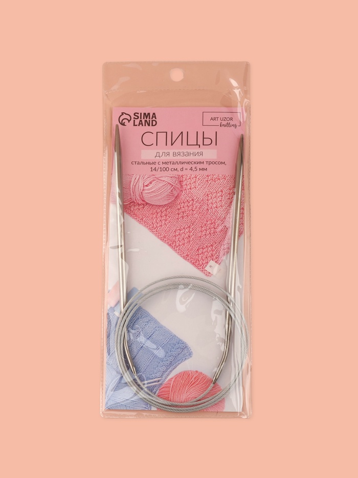 Спицы круговые, для вязания, с металлическим тросом, d=4.5 мм, 14/100 см