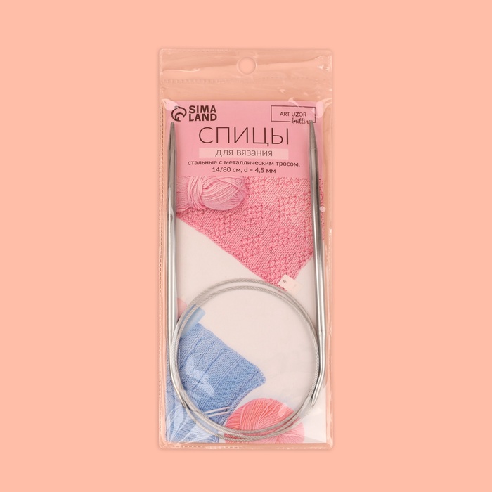 Спицы круговые, для вязания, с металлическим тросом, d=4.5 мм, 14/80 см