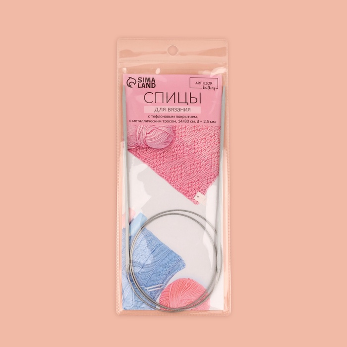 Спицы круговые, для вязания, с тефлоновым покрытием, с металлическим тросом, d=2.5 мм, 14/80 см — Характеристики