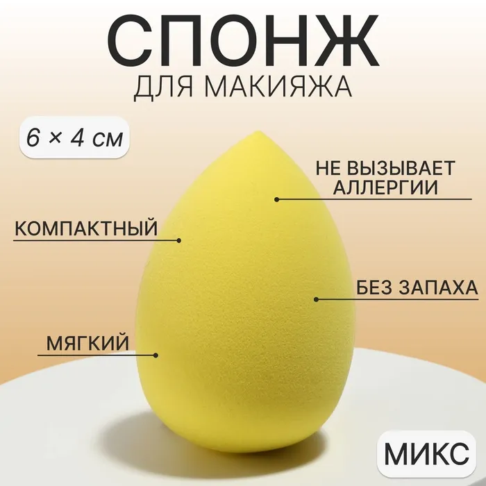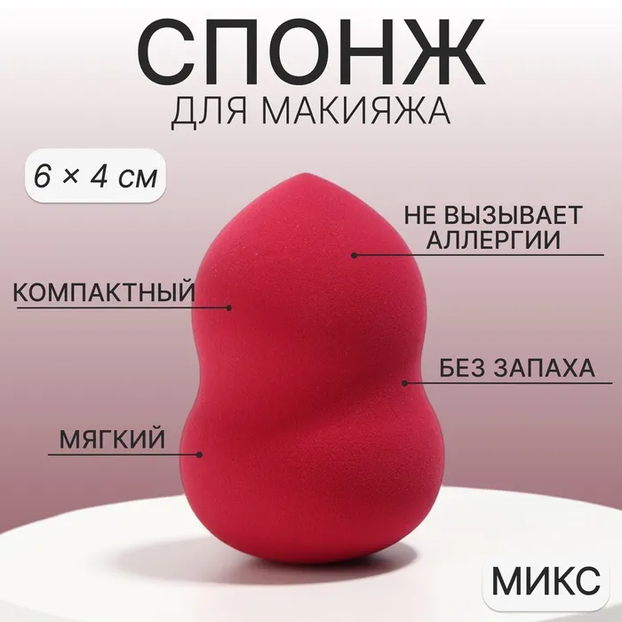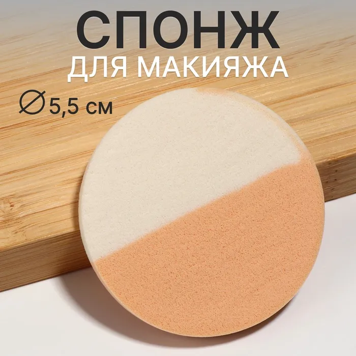 Спонж для макияжа, 5,5 × 4,5 см, цвет белый/бежевый — Характеристики