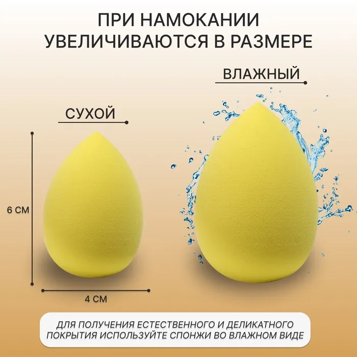 День каждой девушки начинается с привычного ритуала – создания макияжа. Облегчить утреннюю задачу и сэкономить время поможет специальный спонж для нанесения тонального крема. Изделие распределяет косметику ровным, тонким слоем, легко растушёвывает даже в самых труднодоступных местах. Спонж увеличивается при намокании, что позволяет обрабатывать большие участки и ускоряет процесс макияжа, а косметическое средство распределяется по коже более мягко и равномерно. Наслаждайтесь идеально ровным тоном в течение всего дня!