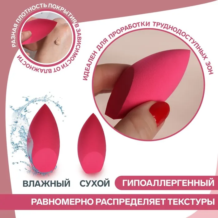 Спонж для нанесения косметики «Капля», 7,5 × 3,5 см, увеличивается при намокании, цвет МИКС — Характеристики