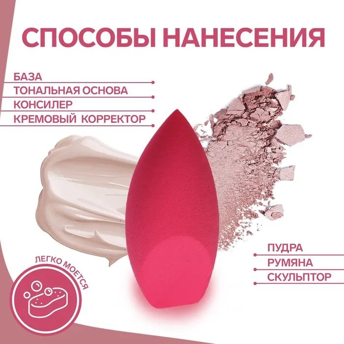 День каждой девушки начинается с привычного ритуала – создания макияжа. Облегчить утреннюю задачу и сэкономить время поможет специальный спонж для нанесения тонального крема. Изделие распределяет косметику ровным, тонким слоем, легко растушёвывает даже в самых труднодоступных местах. Спонж увеличивается при намокании, что позволяет обрабатывать большие участки и ускоряет процесс макияжа, а косметическое средство распределяется по коже более мягко и равномерно. Наслаждайтесь идеально ровным тоном в течение всего дня!