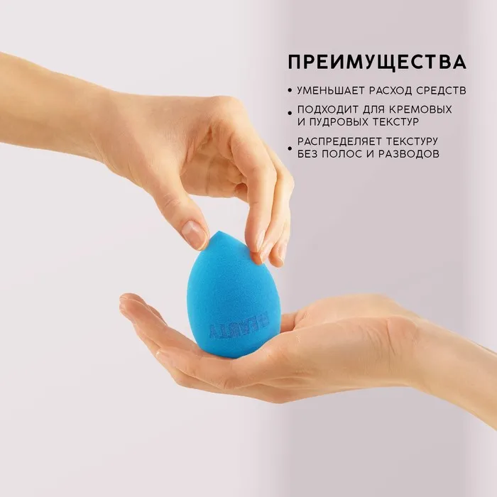 Спонж-капля скошенный Beauty, увеличивается при намокании, синий, Beauty Fox — Характеристики