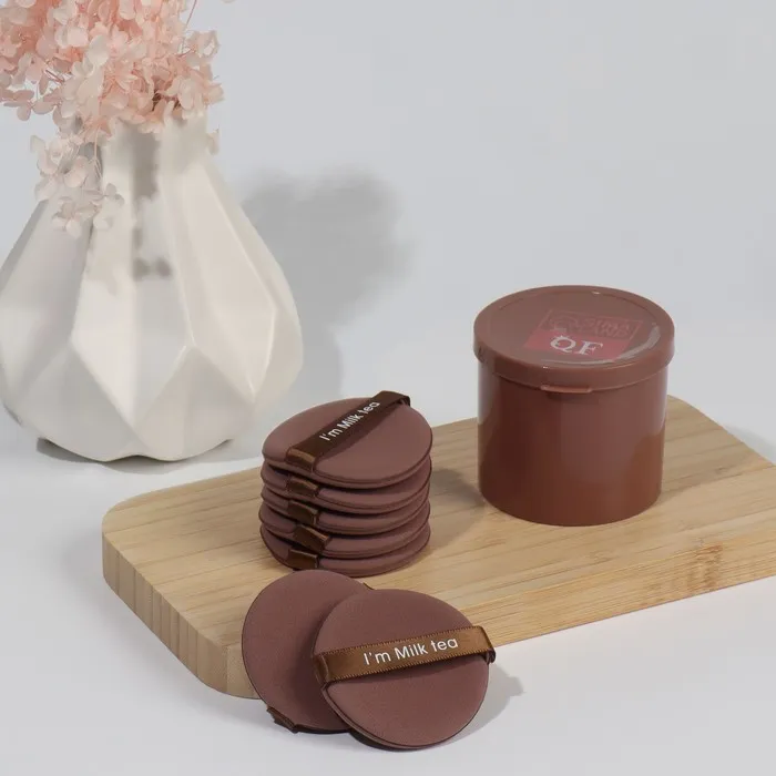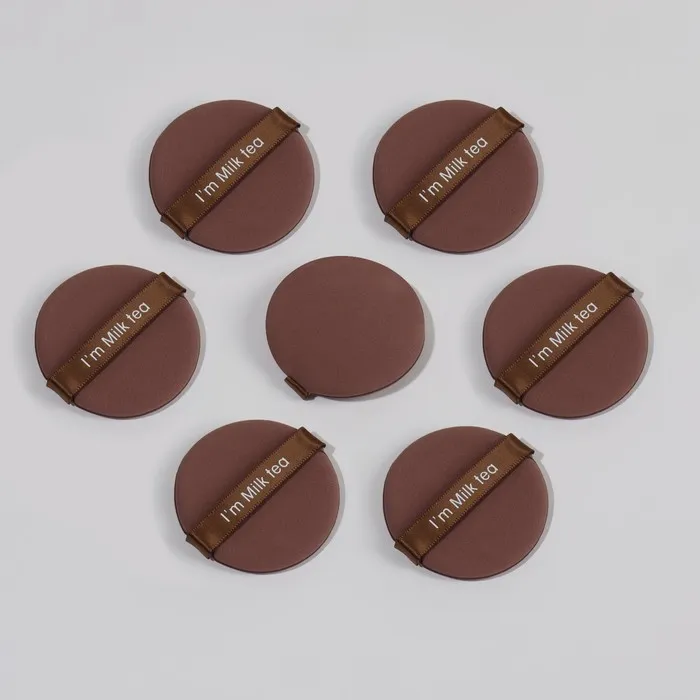 Спонжи для макияжа MILK TEA, набор - 7 шт., d=5.5 см, с держателем, в футляре, коричневые — Характеристики
