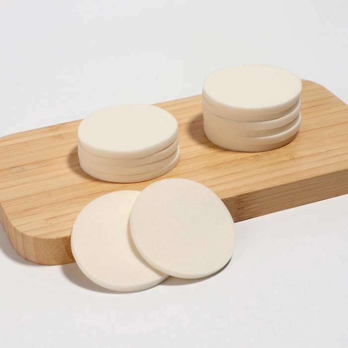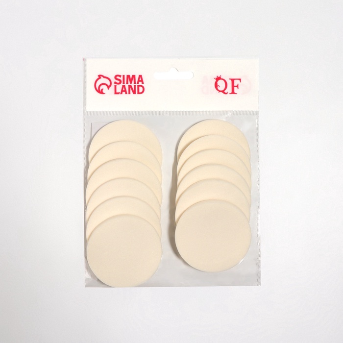 Спонжи для макияжа, набор - 12 шт, d = 5,3 см, цвет белый — Характеристики