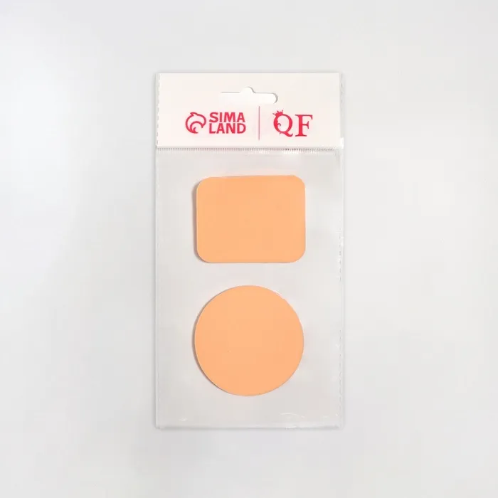 Размер спонжей – d 5,5 × 0,5 см и 5,5 × 4,2 × 0,5 см