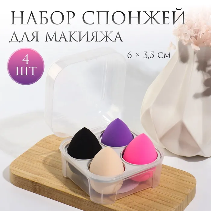 Спонжи для макияжа, набор - 4 шт, увеличиваются при намокании, разноцветные — Характеристики