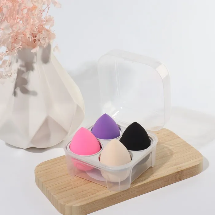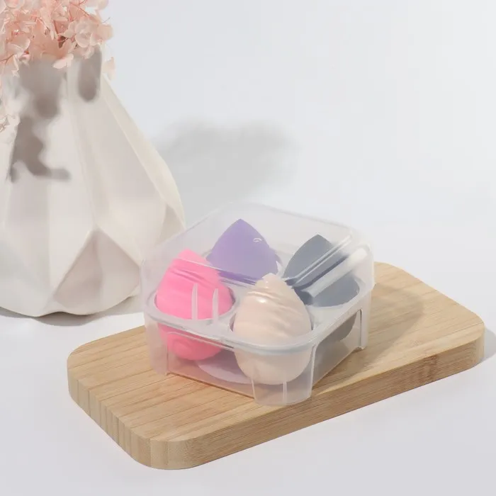 Спонжи для макияжа, набор - 4 шт, увеличиваются при намокании, разноцветные