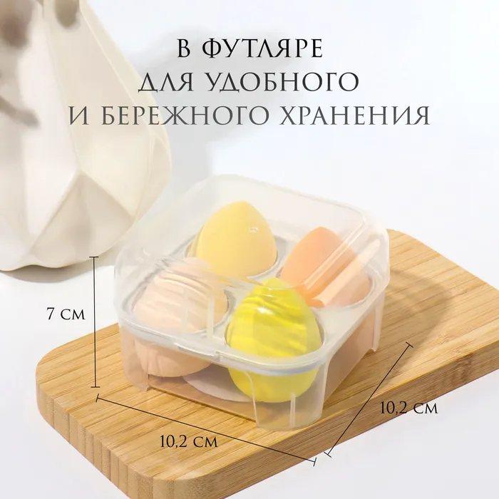 Спонж для макияжа необходимы каждой девушке для создания прекрасного макияжа. Изделие распределяет косметику ровным, тонким слоем, легко растушёвывает даже в самых труднодоступных местах. Спонж увеличивается при намокании, что позволяет обрабатывать большие участки и ускоряет процесс макияжа, а косметическое средство распределяется по коже более мягко и равномерно. Данный набор находится в футляре, что послужит прекрасным дополнением к подарку.