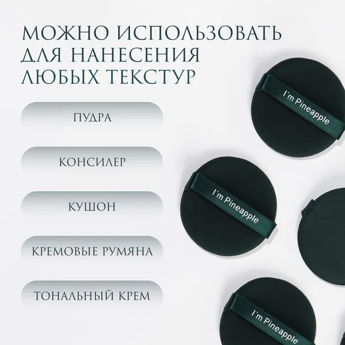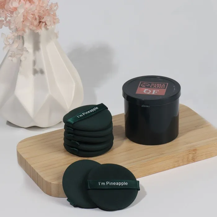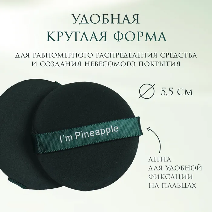 Спонжи для макияжа PINNEAPPLE, набор - 7 шт., d=5.5 см, с держателем, в футляре, цвет изумрудный — Характеристики