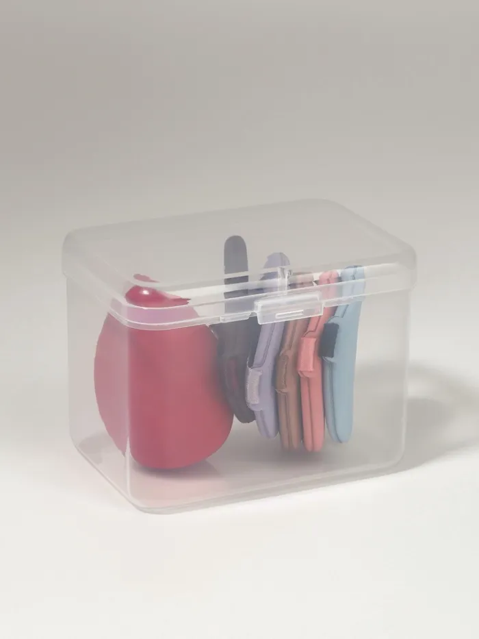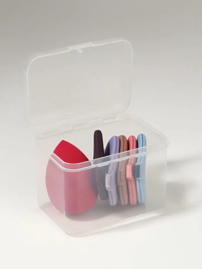 - Удобство хранения: специальный контейнер помогает сохранить спонж чистым и организованным, что особенно важно во время путешествий.