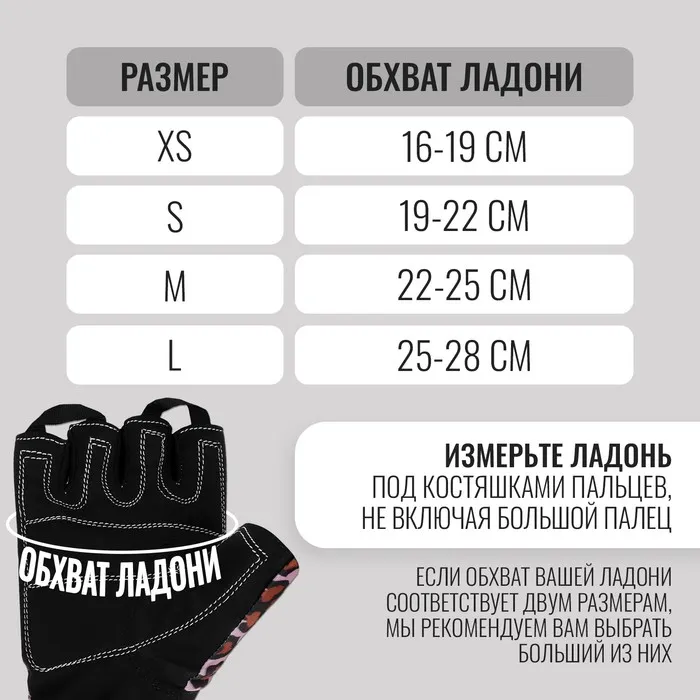 Измерьте сантиметровой лентой обхват ладони по самой широкой части непосредственно под костяшками пальцев (не включая большой палец). Наши перчатки должны плотно прилегать к руке. Если Вы находитесь между двумя размерами, рекомендуем выбрать больший из двух размеров.