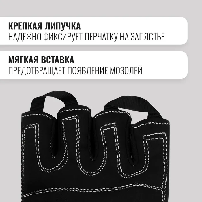 Перчатки изготовлены из полиэстера и нейлона. Эластичный и дышащий верхний материал обеспечивает вентиляцию, а подкладка из пеноматериала создаёт дополнительный комфорт при использовании. Тканевые перемычки между пальцами предназначены для лёгкого снимания, а язычок на запястье облегчает надевание перчаток. Застёжка в области запястья предназначена для плотной посадки.