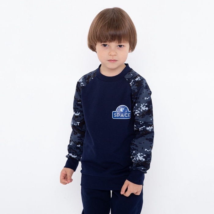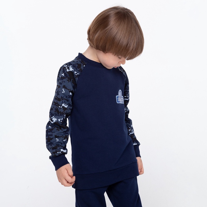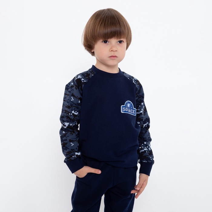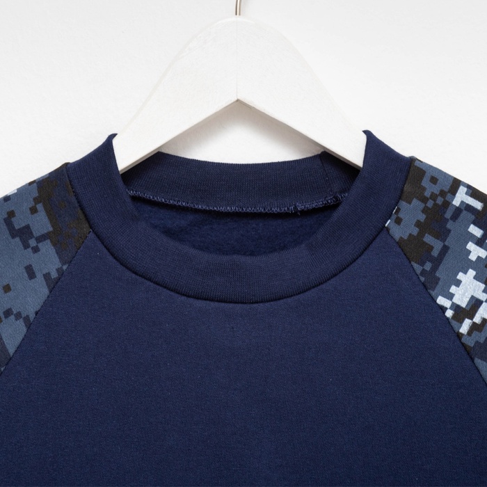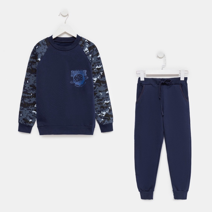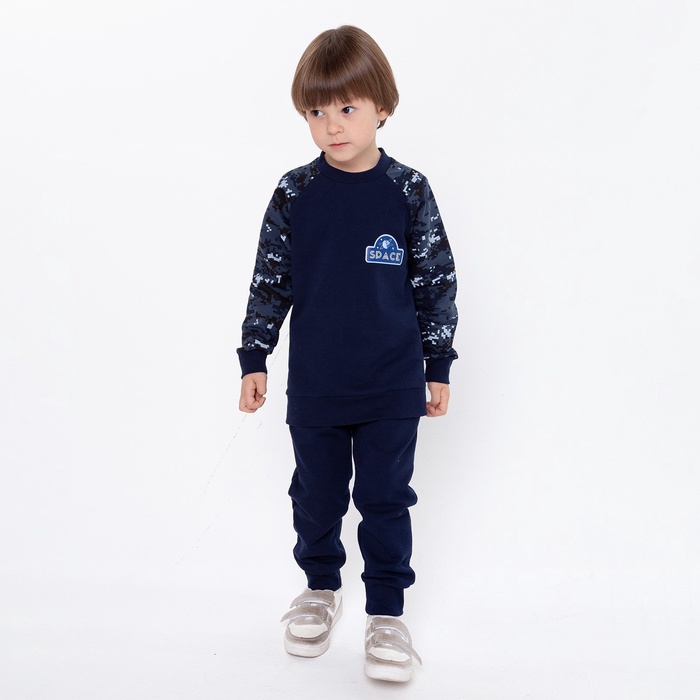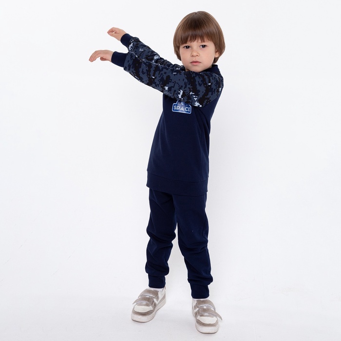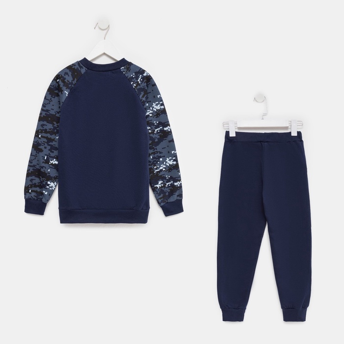 Спортивный костюм (толстовка, брюки) для мальчика, цвет тёмно-синий камуфляж, рост 140-146 см — Характеристики
