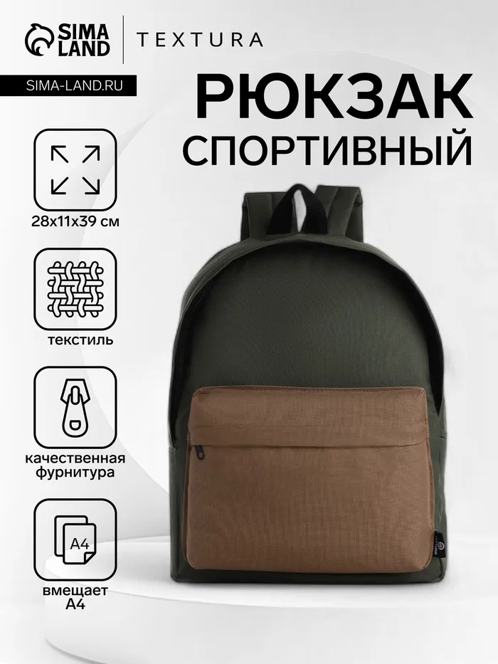 Спортивный рюкзак на молнии TEXTURA, цвет хаки/бежевый — Характеристики