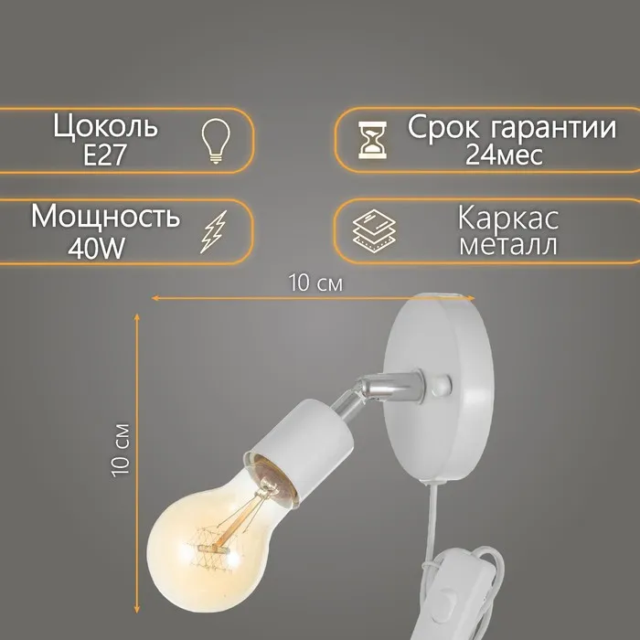 Спот "Дарни" с проводом 150 м и выкл. Е27 40Вт белый 10х10х10 — Характеристики