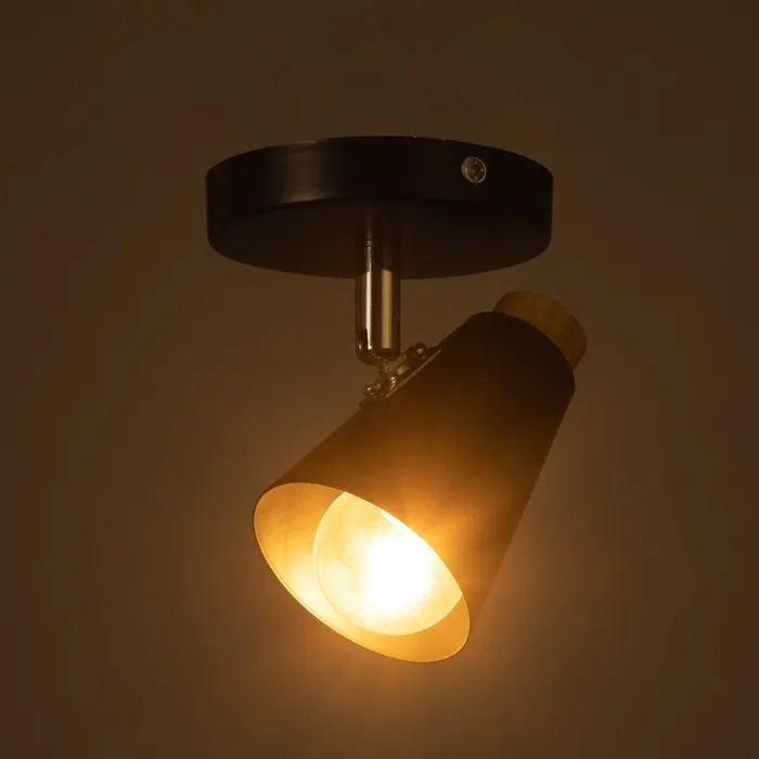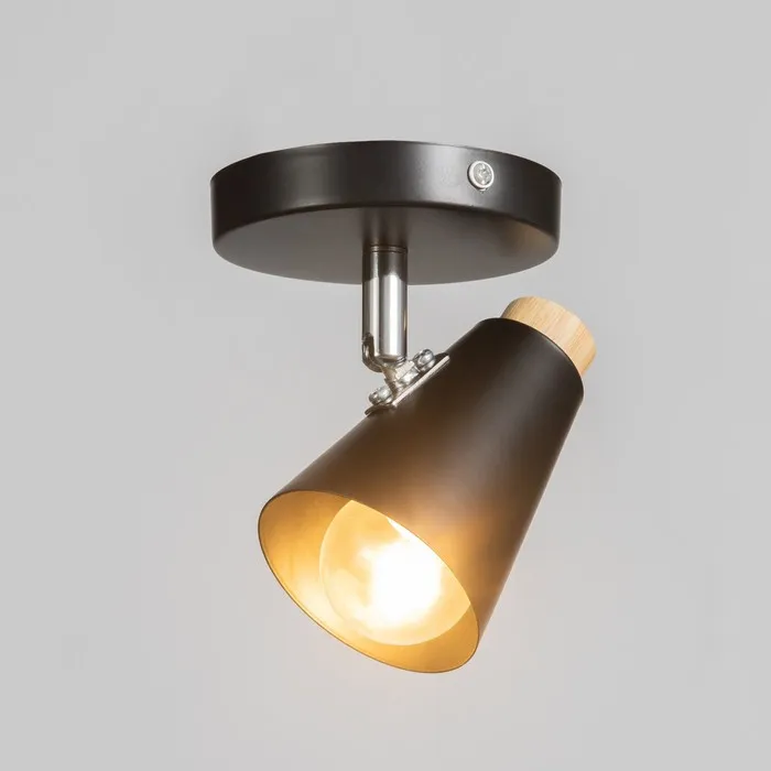 Светильник типа спот «Конус малый» в стиле модерн декорирован натуральным деревом. Устанавливается на потолок или стену. Регулировка на 160° по вертикали, 360° по горизонтали.