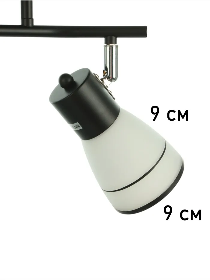 - Современный дизайн: чёрное металлическое основание и стеклянный плафон в форме трапеции придают споту стильный и современный вид, идеально подходящий для интерьеров в стиле хай-тэк.
