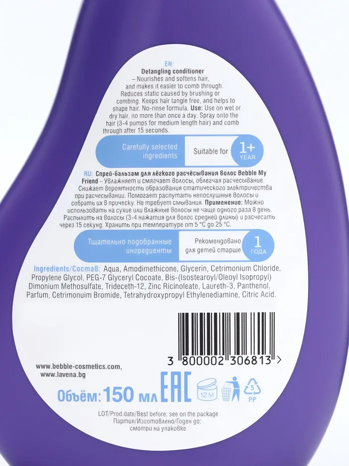 Состав: Aqua, Amodimethicone, Glycerin, PEG-7 Glyceryl Cocoate, Cetrimonium Chloride, Bis-(Isostearoyl/Oleoyl Isopropyl) Dimonium Methosulfate, Propylene Glycol, Panthenol, Parfum, Cetrimonium Bromide, Citric Acid, Trideceth-12, Sodium Benzoate.