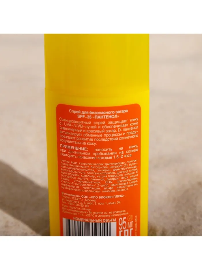 Спрей для безопасного загара Биокон «ПАНТЕНОЛ» SPF-35, 95 мл — Характеристики
