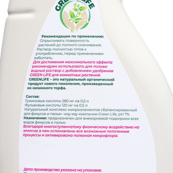 ""Green Life"" - это органический спрей, разработанный специально для ухода за фикусами и пальмами.
