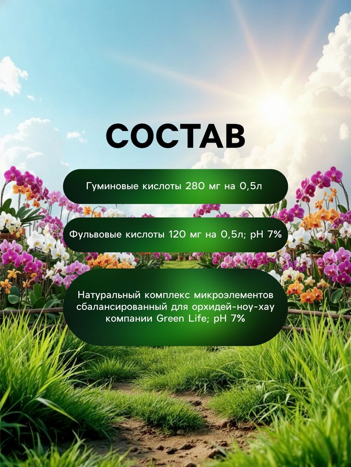 ""Green Life"" - это органический эликсир, специально разработанный для ухода за орхидеями. Этот удивительный продукт объединяет в себе силу природы и передовые технологии, чтобы обеспечить вашим растениям здоровый рост и богатое цветение.