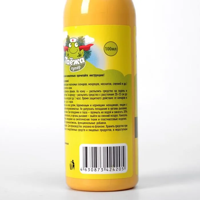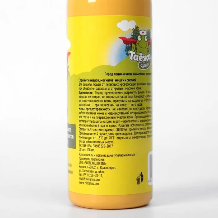 Средство "Таёжа" не только эффективно, но и безопасно для здоровья человека и окружающей среды. Его уникальная формула не содержит вредных химических веществ, которые могут нанести вред здоровью, но не стоит наносить спрей на детскую кожу.