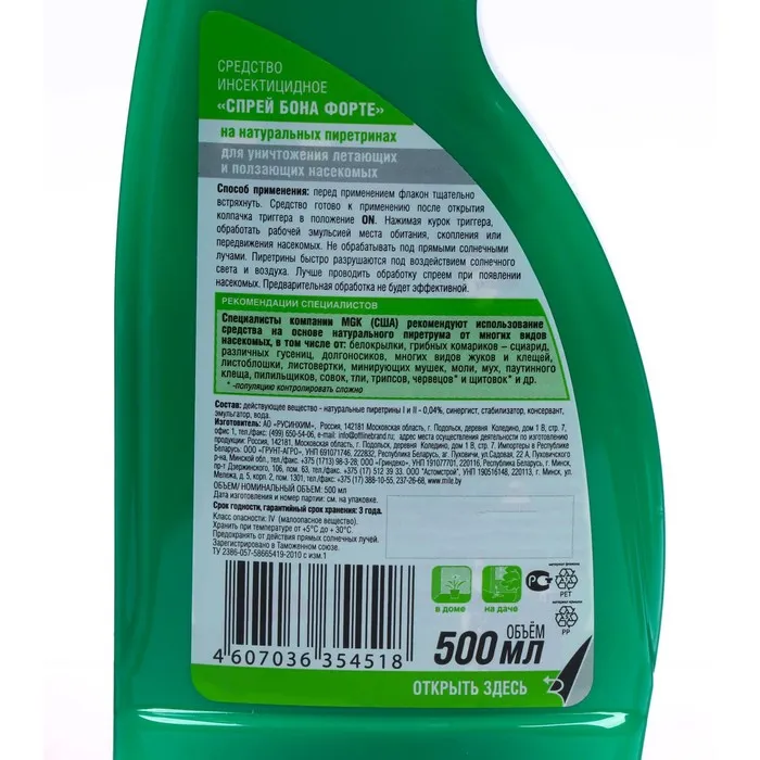 Спрей от летающих насекомых Бона Форте на натуральных пиретринах, флакон 500 мл тригер — Характеристики