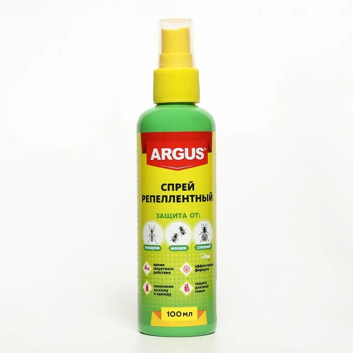 Спрей репеллентный от комаров, мошек, слепней, флакон "Argus", 100 мл — Характеристики