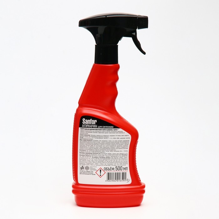 Sanfor - это большая линейка чистящих средств по уходу за ванной комнатой. Эффективная формула спрея Sanfor "Антиржавчина" легко и быстро удаляет известковый налет, ржавчину, въевшуюся грязь, уничтожает бактерии и микробы, устраняет неприятные запахи. Максимальный эффект чистки обеспечивает комплекс кислот в составе. Чистящее средство предназначено для чистки и ухода за ваннами, раковинами, кафельной плиткой. Спрей обладает антимикробным эффектом и подходит для ежедневного применения. Безопасность, экономичный расход и удобство в использовании обеспечивает удобный мультитриггер "спрей-пена" с блокиратором. Sanfor "Антиржавчина" - это гигиеническая чистота и свежесть ванной комнаты!