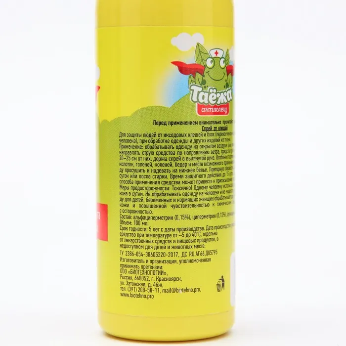 Меры безопасности: ТОКСИЧНО! Одному человеку использовать для обработки не более 1 флакона в сутки. Не обрабатывать одежду на человеке и не надевать ее до полного высыхания. Одежду для детей, беременных и кормящих женщин обрабатывают другие лица. Лицам с заболеваниями кожи и повышенной чувствительностью к химическим веществам применять средство с осторожностью.