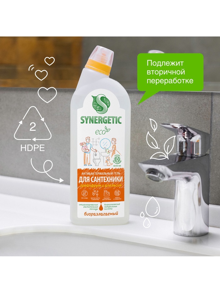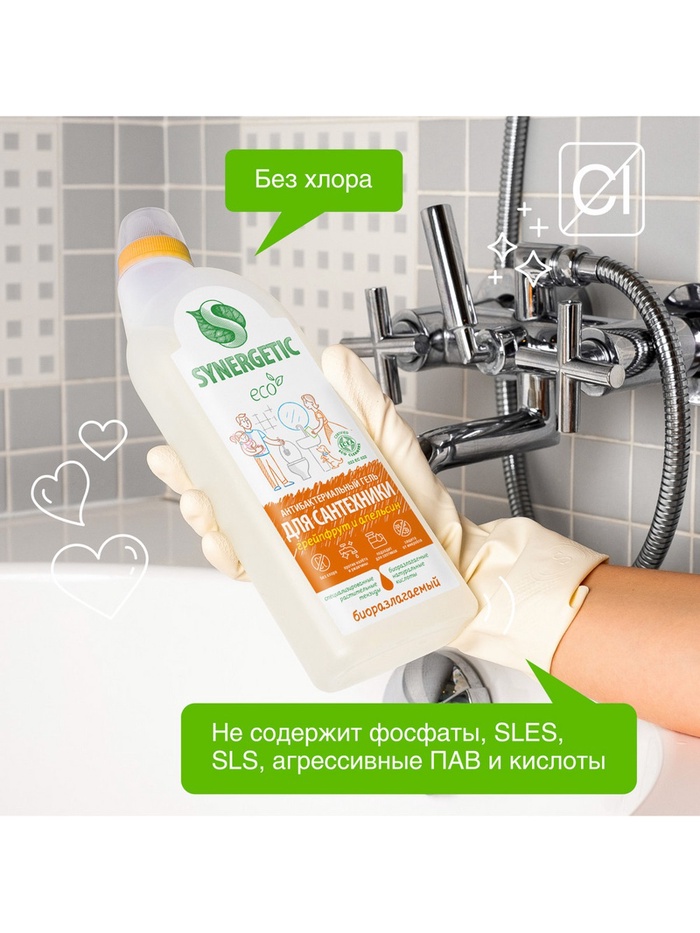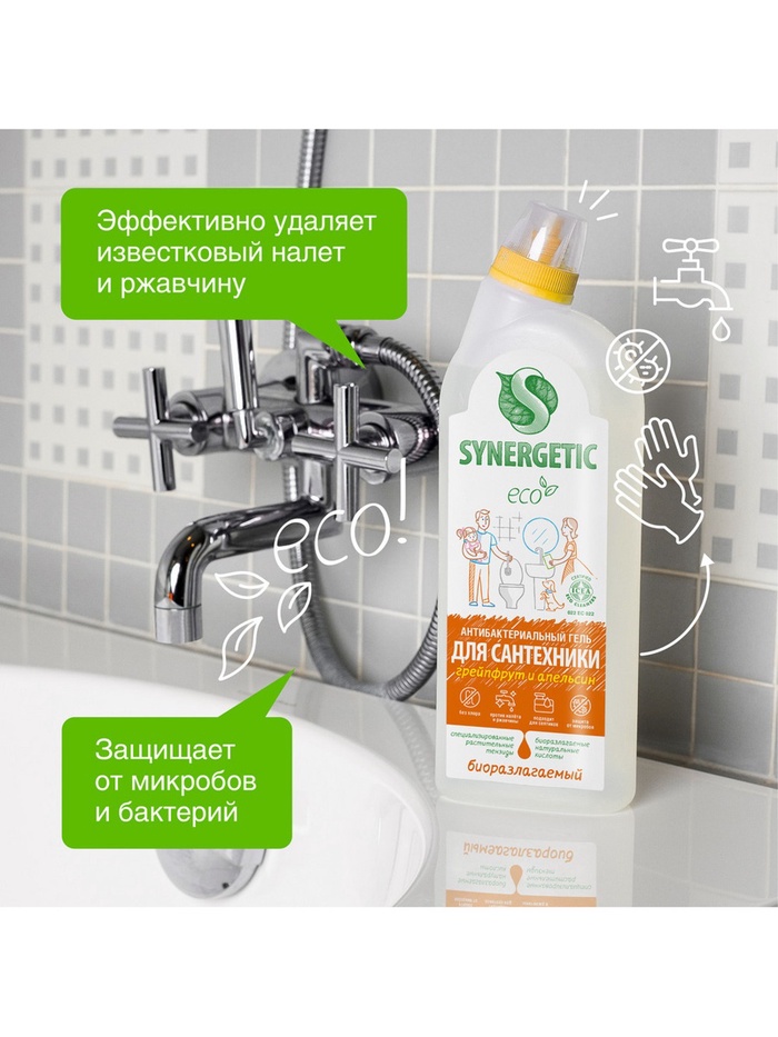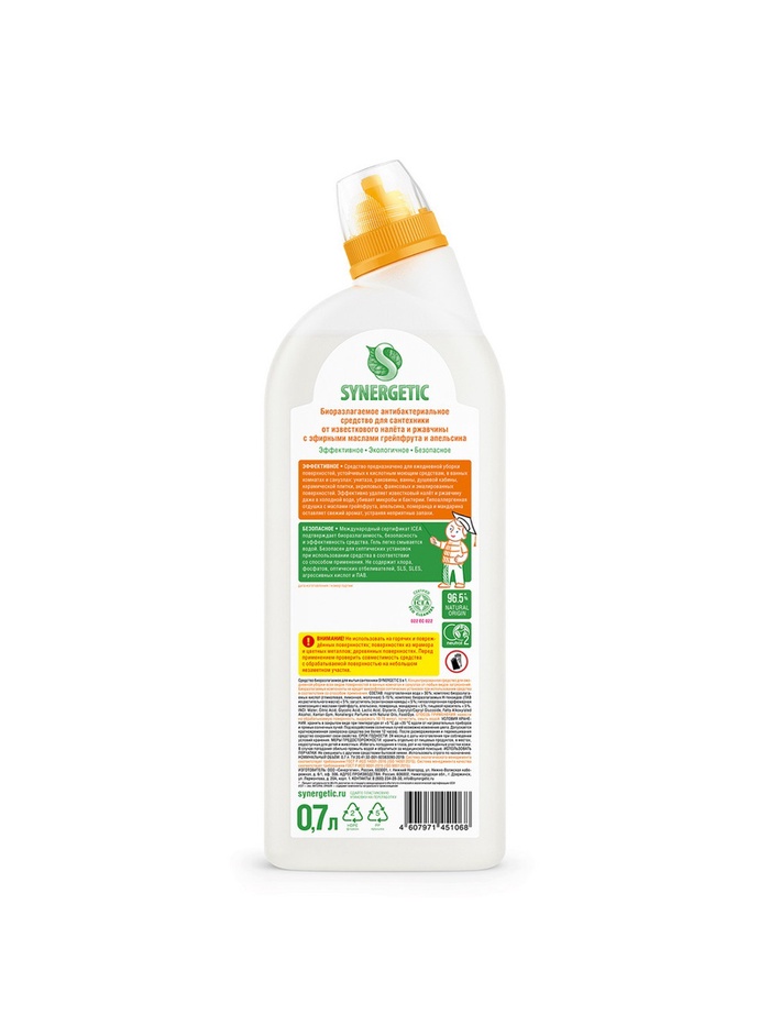 Средство биоразлагаемое для мытья сантехники SYNERGETIC грейпфрут и апельсин 5 в 1, 0,7л — Характеристики