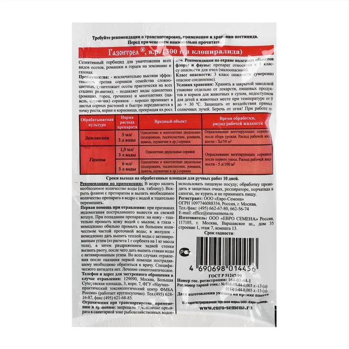 Газонтрел — эффективное средство для борьбы с нежелательными сорняками, такими как осоты, ромашки и горцы. Созданное на основе передовых технологий, это средство позволяет быстро и надежно избавиться от вредных растений, улучшая состояние вашего газона и садового участка.