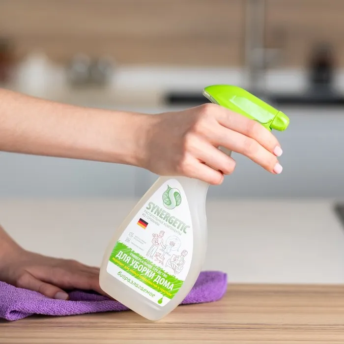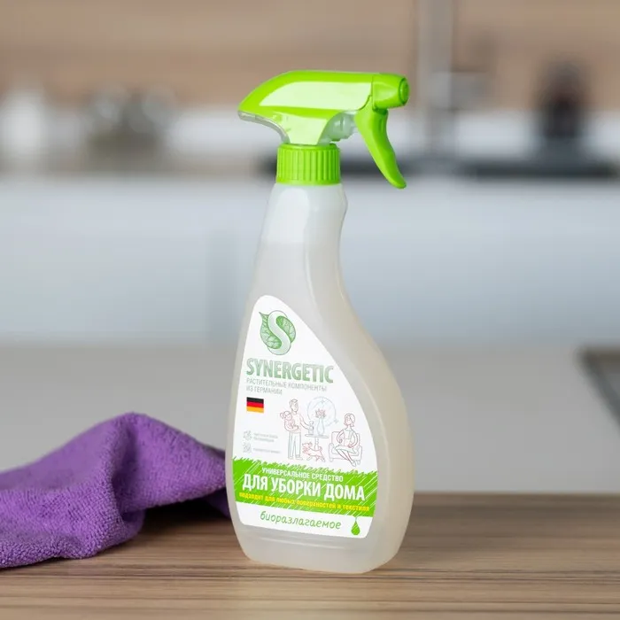 Универсальный биоразлагаемый спрей для уборки SYNERGETIC - это многофункциональное чистящее средство, которое быстро и легко удаляет любые виды бытовых загрязнений: грязь, масложировые пятна, пыль, налет. Эффективно устраняет неприятные запахи и обезжиривает поверхность, защищая ее от повторного загрязнения.
