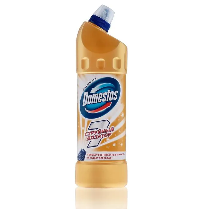 Универсальный чистящий гель помогает обеспечивать в доме блестящую чистоту и защиту от микробов надолго. Густое и экономичное средство, которое имеет гелевую текстуру и помогает устранять неприятные запахи, бактерии, грибки, вирусы и споры во всем доме. Чистящий гель универсальный можно купить и использовать для уборки и очищения туалета, ванны, раковины, плитки, рабочих поверхностей на кухне и полов. Универсальный чистящий гель Domestos Ультра блеск: