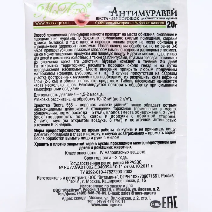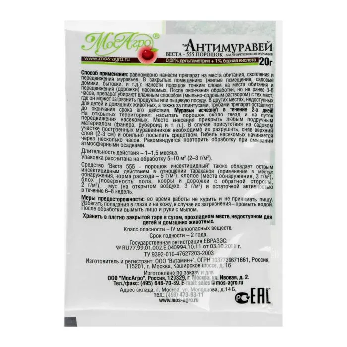 Средство для борьбы с муравьями Антимуравей, порошок, 20 г — Характеристики