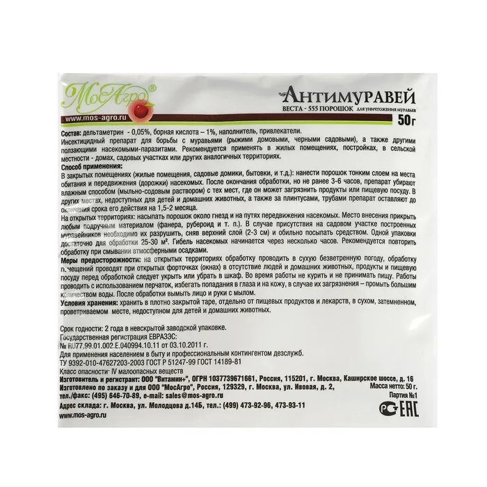 «Антимуравей» — это готовое к применению средство для борьбы с домовыми и садовыми муравьями. В его составе содержится наполнитель, привлекающий насекомых, поэтому они охотно посещают обработанные места.