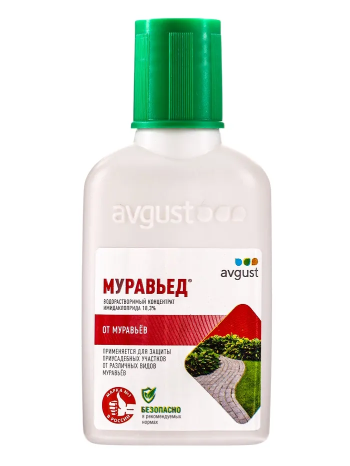 Механизм действия: «Муравьед» — препарат контактно-кишечного действия. Применяется на приусадебных участках, отмостках домов, в щелях между садовыми плитами. Он попадает в организм насекомых, оказывая губительное влияние на их нервную систему: вызывает торможение мышечной деятельности, судороги, а затем полный паралич. Положительные особенности препарата — отсутствие привыкания к нему муравьев и экономичный расход. Муравьи исчезают в течение не более трех суток после обработки. Защитный эффект сохраняется на протяжении не менее 3 недель.