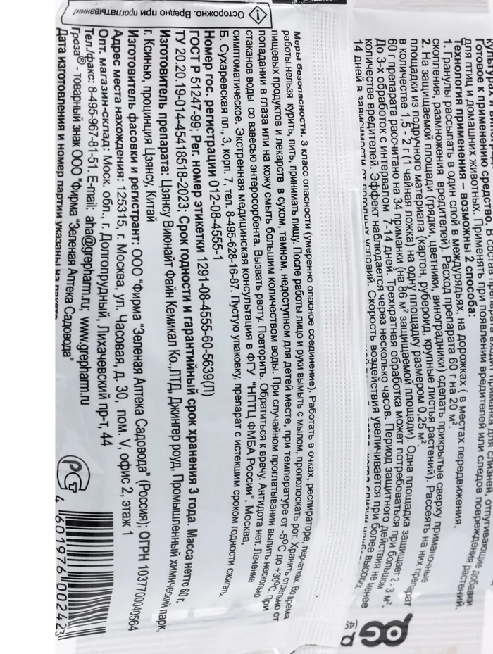 Разложить на грядке, в цветнике в виде приманочных площадок (7 г на 10 м²).