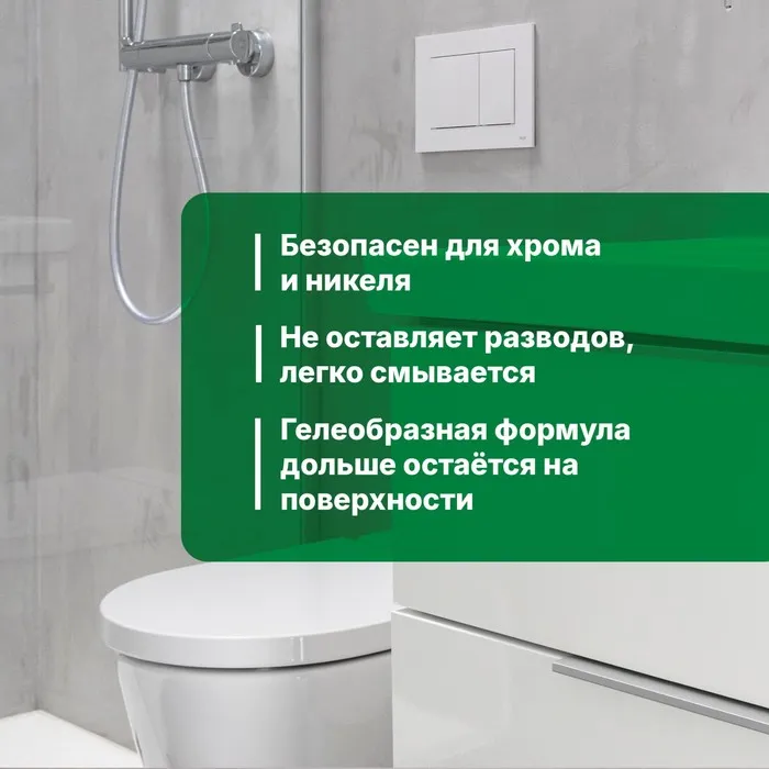 Гель для душевых кабин и акриловых ванн Prosept – чистящее средство на основе лимонной кислоты. Бережно удаляет ржавчину, известковые и минеральные отложения, удаляет неприятные запахи. Образует защитную пленку, замедляя последующие загрязнения.