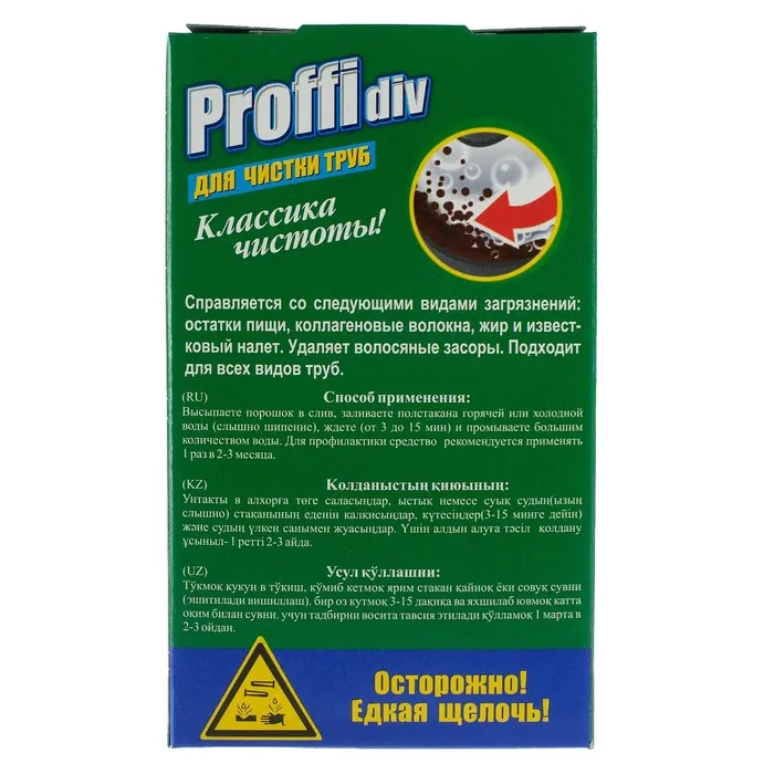 Способ применения: высыпьте порошок в слив, заливайте полстакана горячей воды или холодной воды (слышно шипение), ждете 3-15 мин и промываете большим количеством воды. Для профилактики рекомендуется применять 1 раз 2-3 месяца.