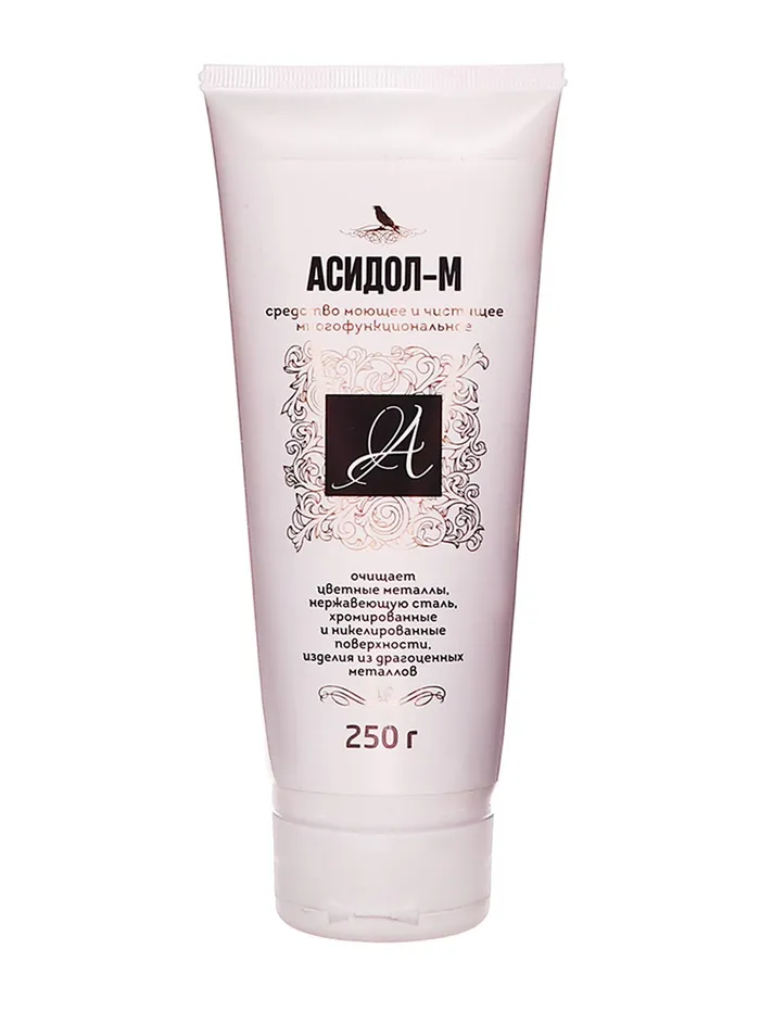 "Асидол-М" - универсальное средство для чистки изделий из драгоценных и цветных металлов, нержавейки, а так же хромированых и никелированных поверхностей. Представляет собой жидкость белого цвета с характерным резким запахом.